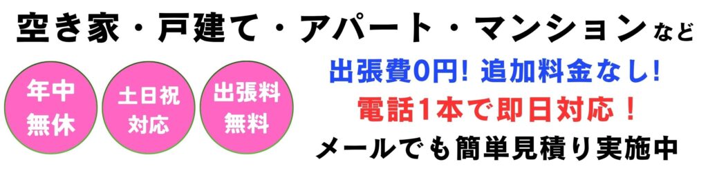 年中無休で土日祝も対応可能です。お客様のご都合に合わせて柔軟に調整いたします。お急ぎの場合は即日対応も可能です。