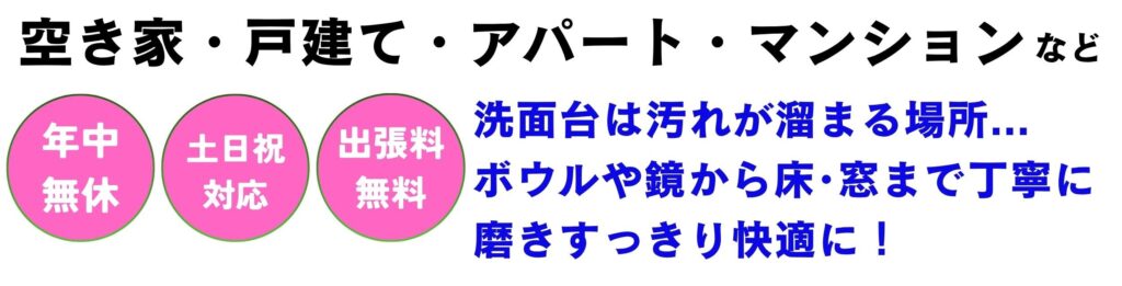 空き家、戸建て、マンション・アパートや、お住まいの入退去時のハウスクリーニングも承っております。